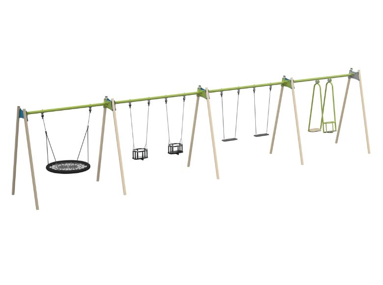 נדנדת חצובה ממתכת עם שני מושבי פעוטות. מושב מגומי המתוכנן במבנה סגור עם מחיצה לרגליים לשימוש בטיחותי לגיל הרך. מתאים לשימוש לתינוקות יושבים ועד גיל שלוש. מתקן הנדנדה הוא מהחשובים שבגן המשחקים. חדוות הנדנוד, תנועת השחרור והתנופה תוך פיתוח מערכת שיווי המשקל הינם בסיסיים ומשמעותיים בהתפתחותו של הילד.