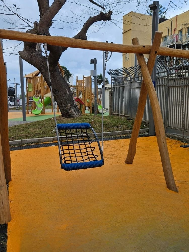גן יפת בתל אביב עבר התחדשות עם מתקני משחק מעץ רוביניה טבעי, שמייצרים חוויית משחק פעילה ונעימה במרחב הציבורי. בגן תמצאו מגדלים עם מגלשות, מעבר רשת תלוי בין המפלסים, אלמנטים לטיפוס, נדנדות ובית משחק צבעוני למשחק דמיון.