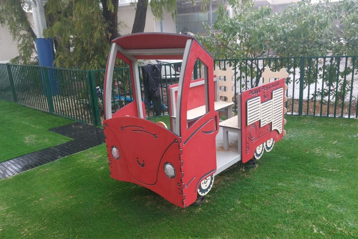 הפרויקט נולד מתוך רצון לייצר גן משחקים קהילתי שמספר סיפור ברור. כבר בשלב הרעיון הוחלט כי הקמת גן משחקים בעיצוב מכבי אש תאפשר לילדים להיכנס לעולם של משימות, קריאות חירום והצלת היום, דרך משחק חופשי ותנועה. במרכז הגן תוכננה תחנת כבאות דו קומתית הבולטת בשטח ומזוהה מרחוק. המתקן כולל רשתות ואלמנטים לטיפוס, מגלשות ותוספות גרפיות מעולם הכבאות, ומעודד תנועה בין מפלסים ותרחישי משחק משתנים. לצידה שולב מתקן כבאית עצמאי המדמה כלי רכב מבצעי ומאפשר משחק תפקידים קבוצתי. המרחב כולו תוכנן כך שיאפשר זרימה טבעית בין אזורי הפעילות, עם נדנדות כולל נדנדת קן ציפור, מתקני קפיץ בהשראת כלי תחבורה נוספים. משטח הבטיחות והצללות המפרש תורמים לנוחות שימוש יומיומית ולתחזוקה מותאמת לסביבה קיבוצית פתוחה. התוצאה היא גן משחקים מזוהה וברור קונספטואלית, המשלב דמיון, תנועה ואתגר במרחב ציבורי אחד.