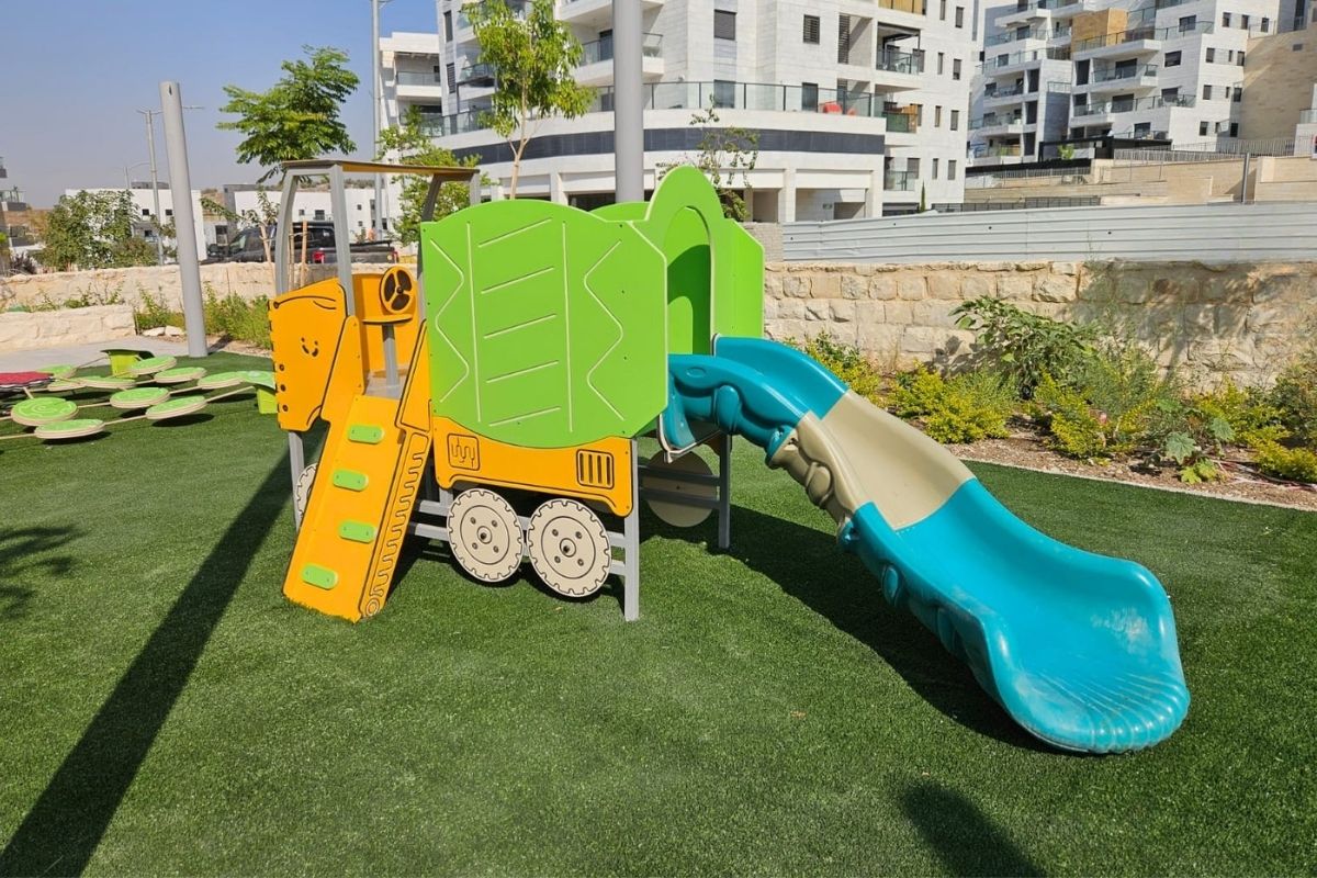בתכנון גן משחקים לפעוטות הושם דגש על התאמה לגיל הצעיר ועל שילוב בין אלמנטים שמזמינים טיפוס, מעבר, גלישה ומשחק עצמאי.