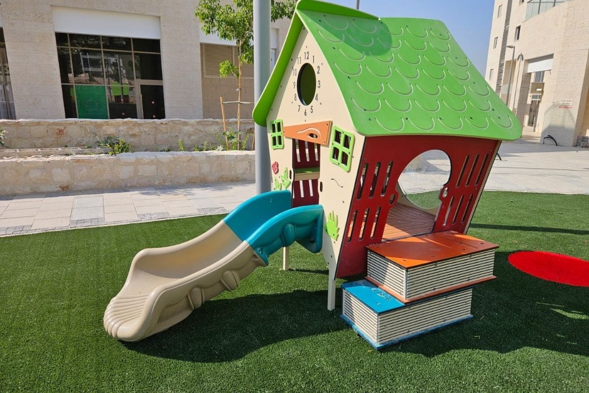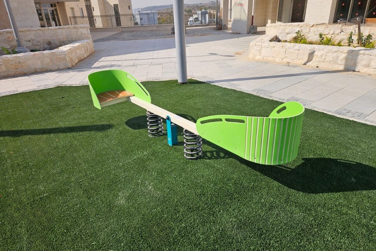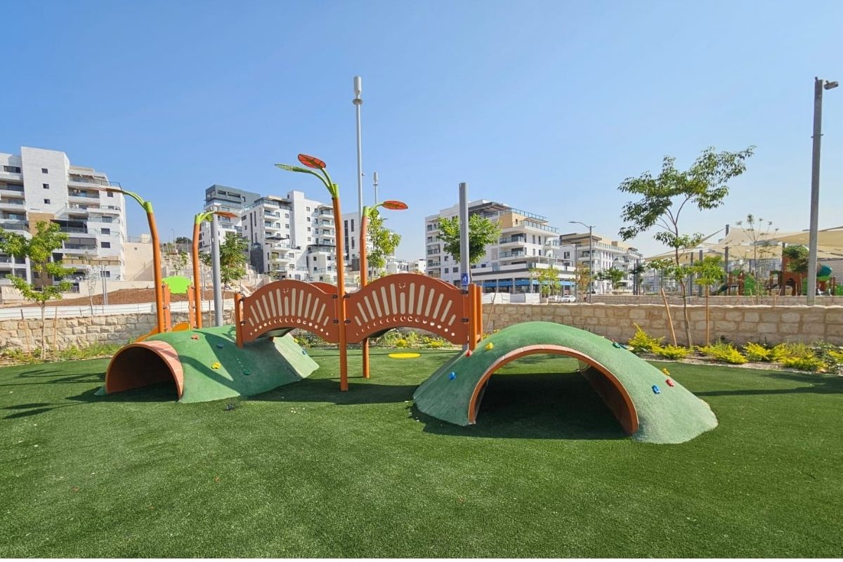 גבעות הגומי מייצרות טופוגרפיה משחקית רכה, הגשר יוצר רצף תנועה, בית המשחק מוסיף ממד דמיוני, והמערבל יחד עם נדנדת עלה ורד משלימים גן פעוטות מגוון בקנה מידה מותאם.